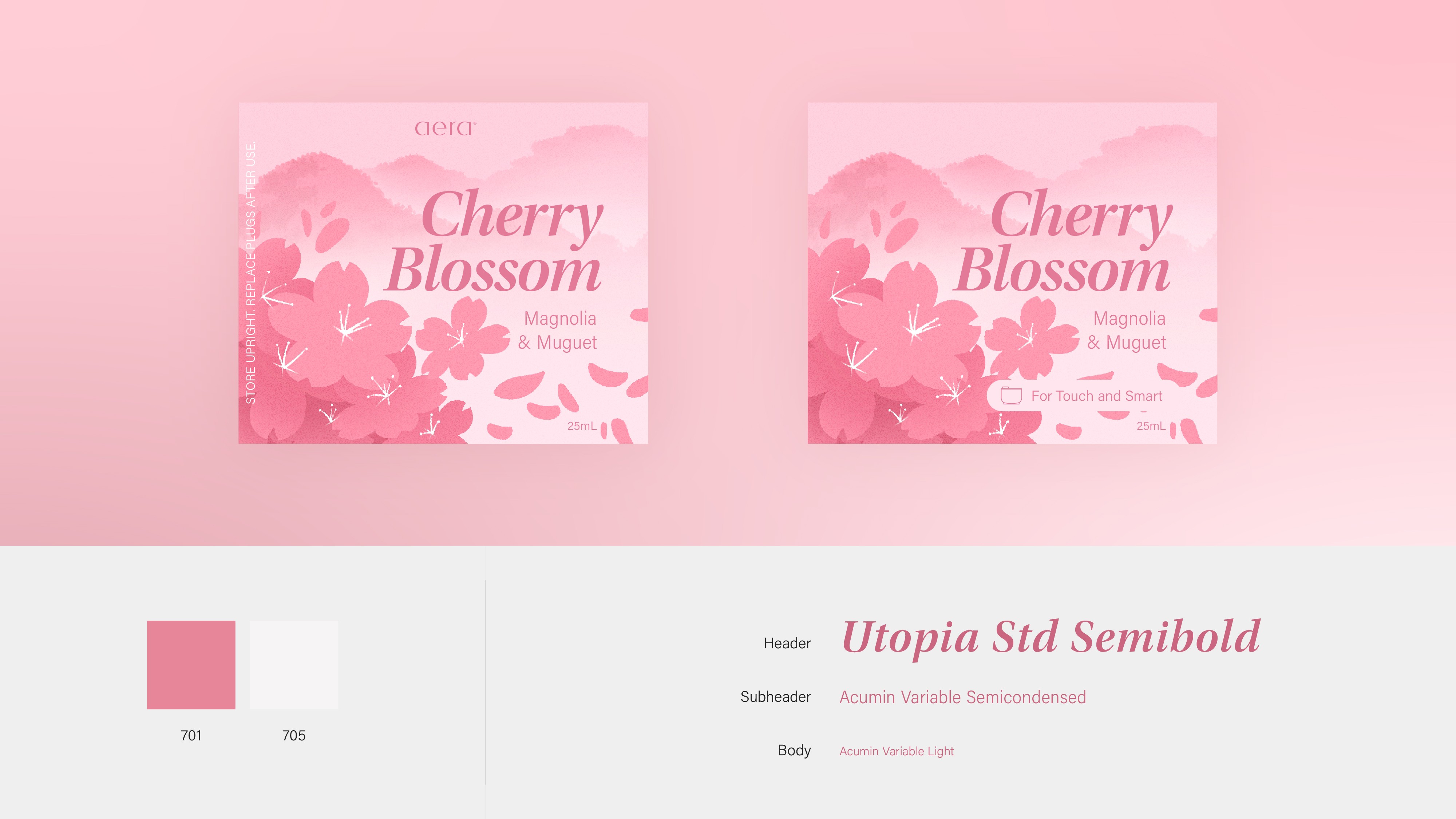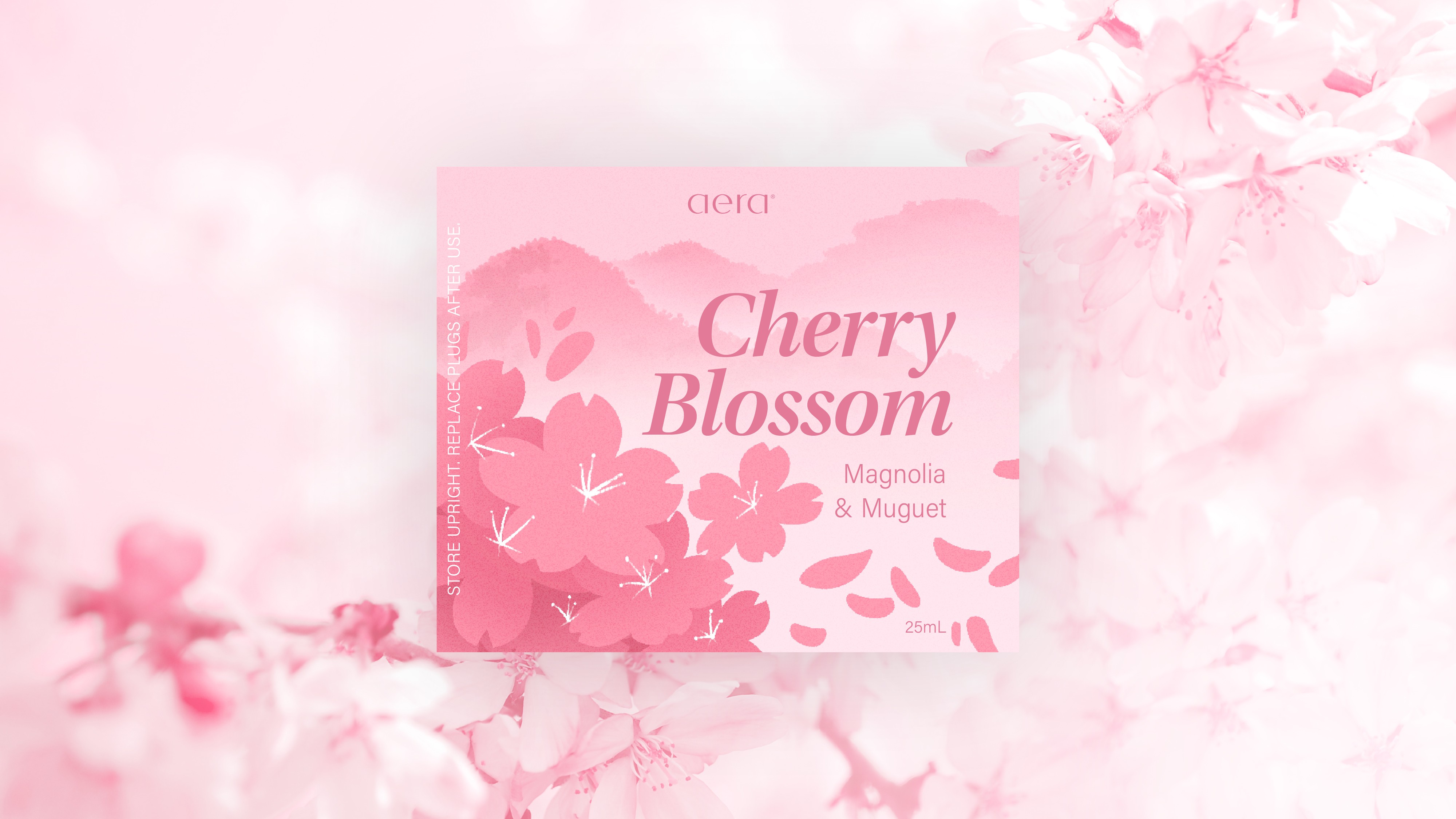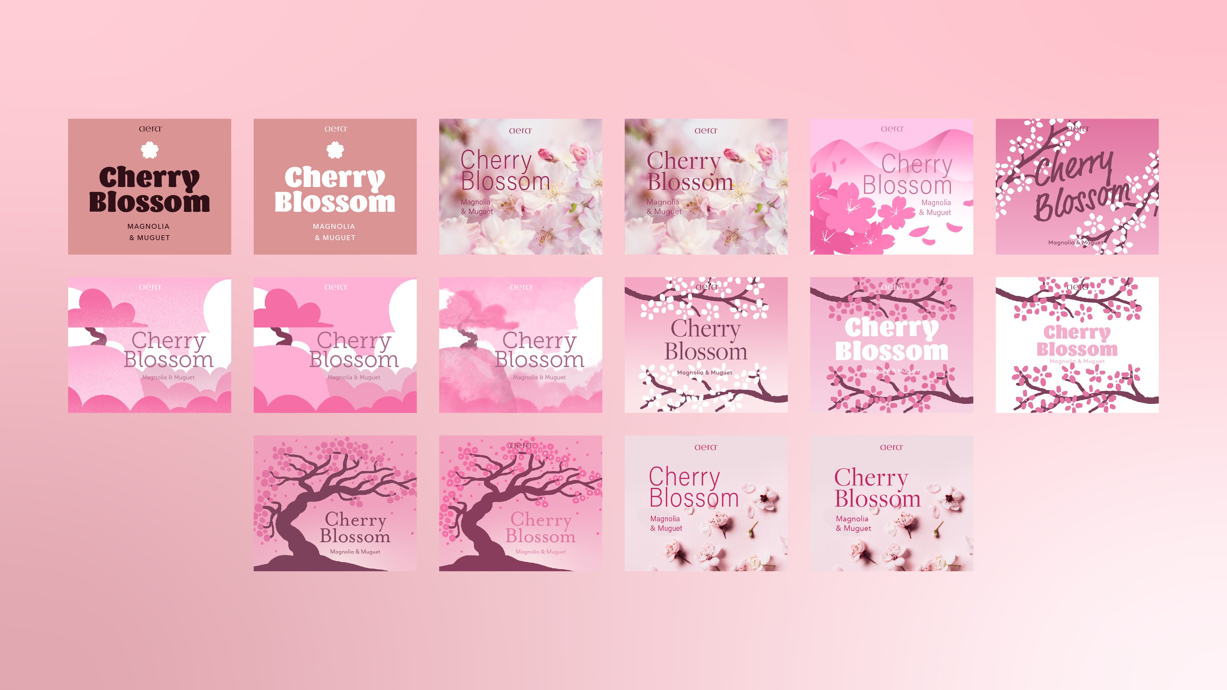 I arrived at a simple graphical illustration of some cherry blossoms blowing in the wind with rolling pink hills in the background.