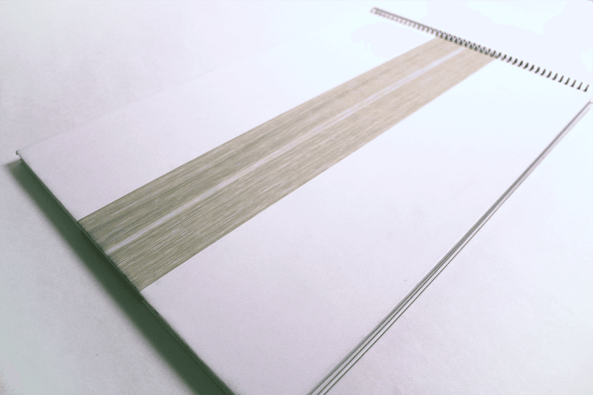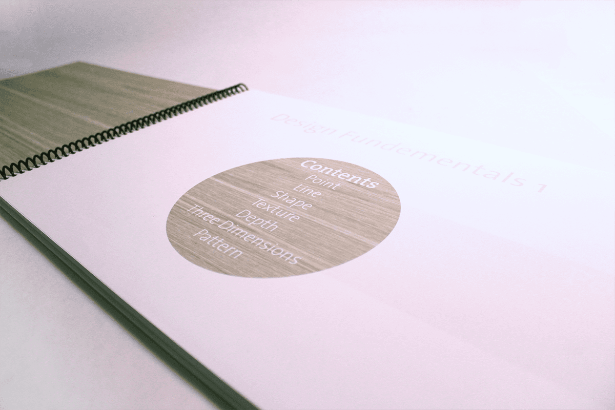 I chose a minimalist wood theme. A band of wood wraps around the front and back covers, the same texture is used for the inside covers and the content page circle.