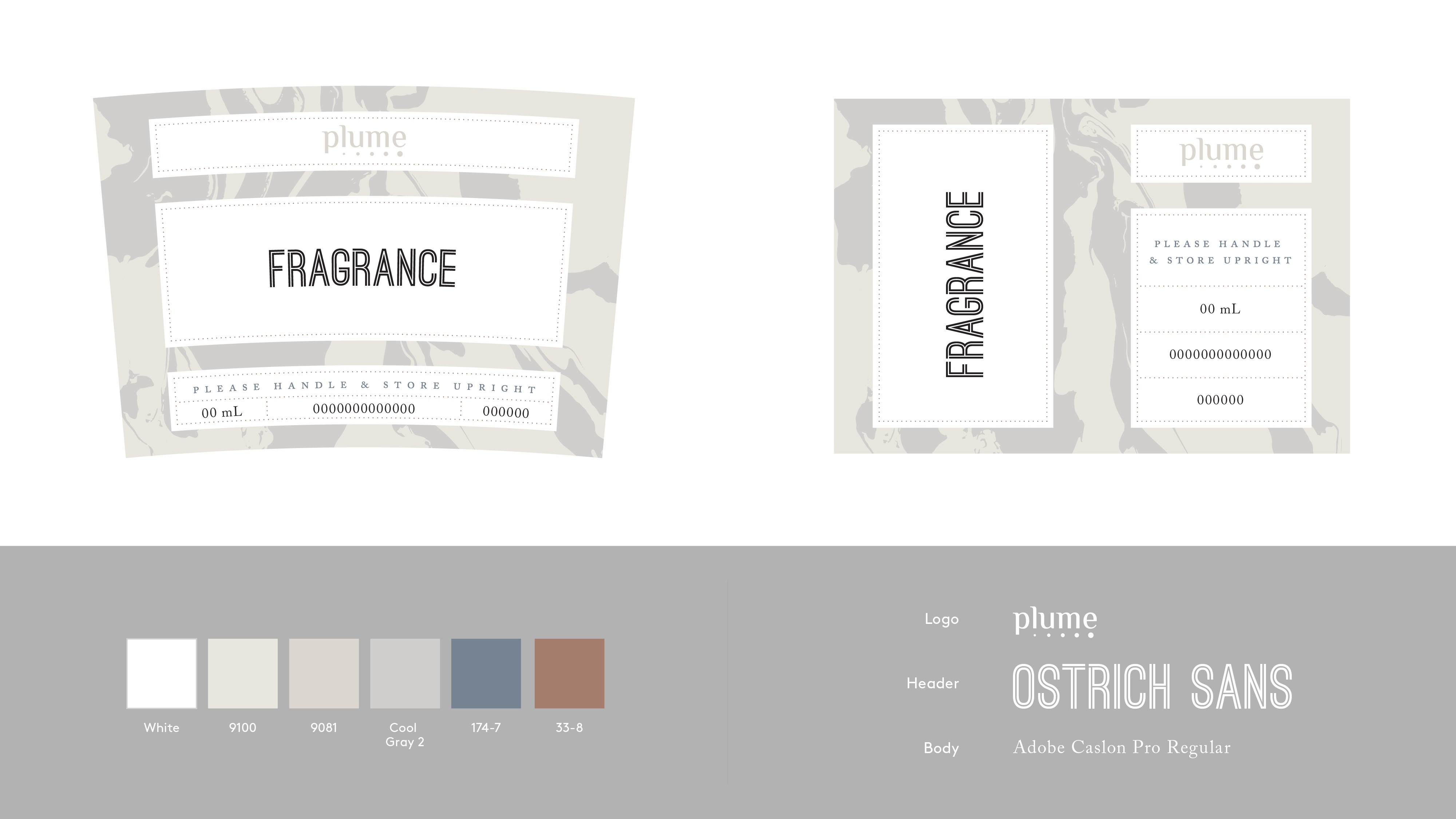 I was tasked with exploring and implementing an identity for the Plume diffuser, an exposed capsule diffuser. I opted for a marbled texture, something organic that recolors nicely and contrasts the geometric type.