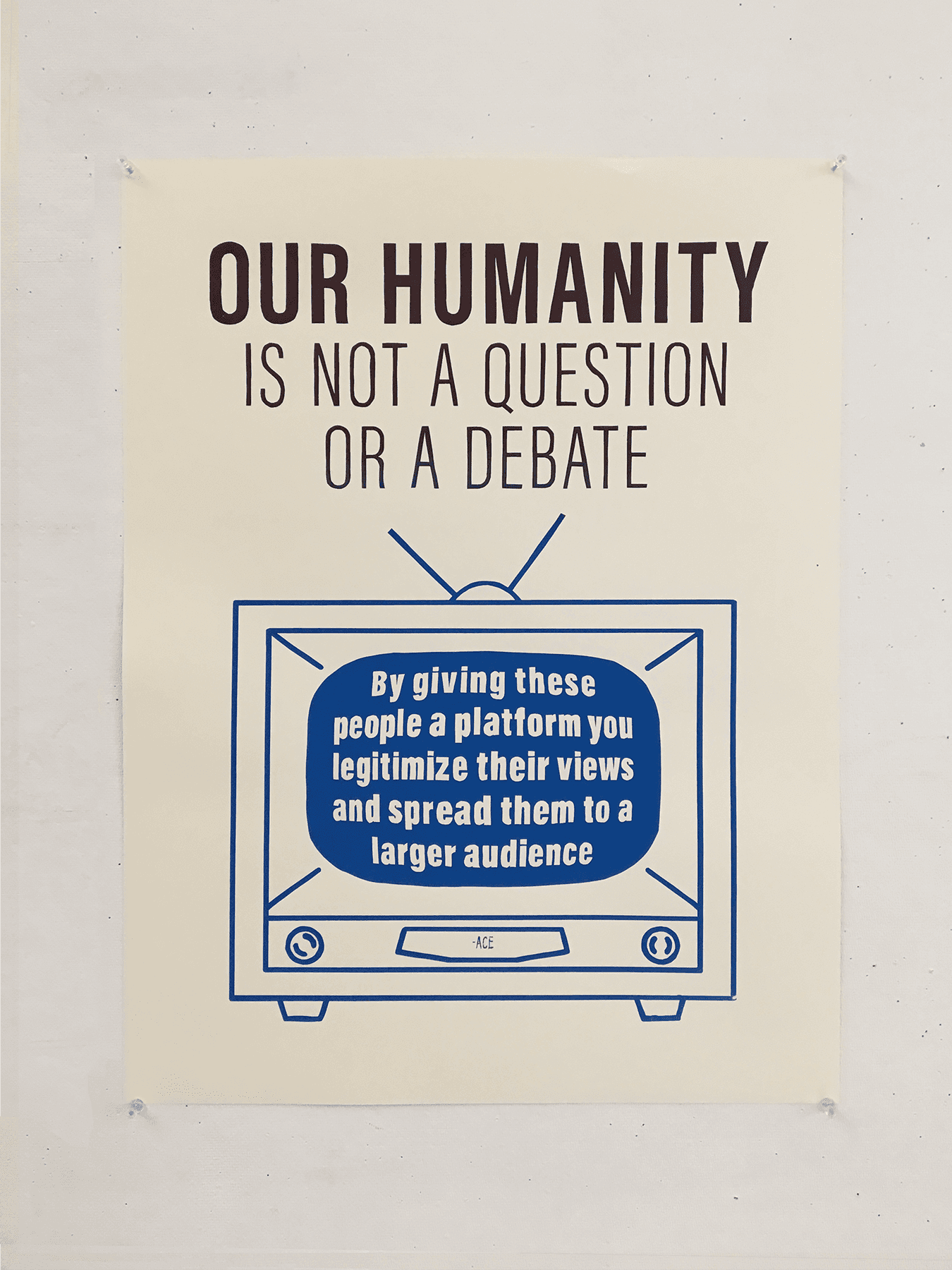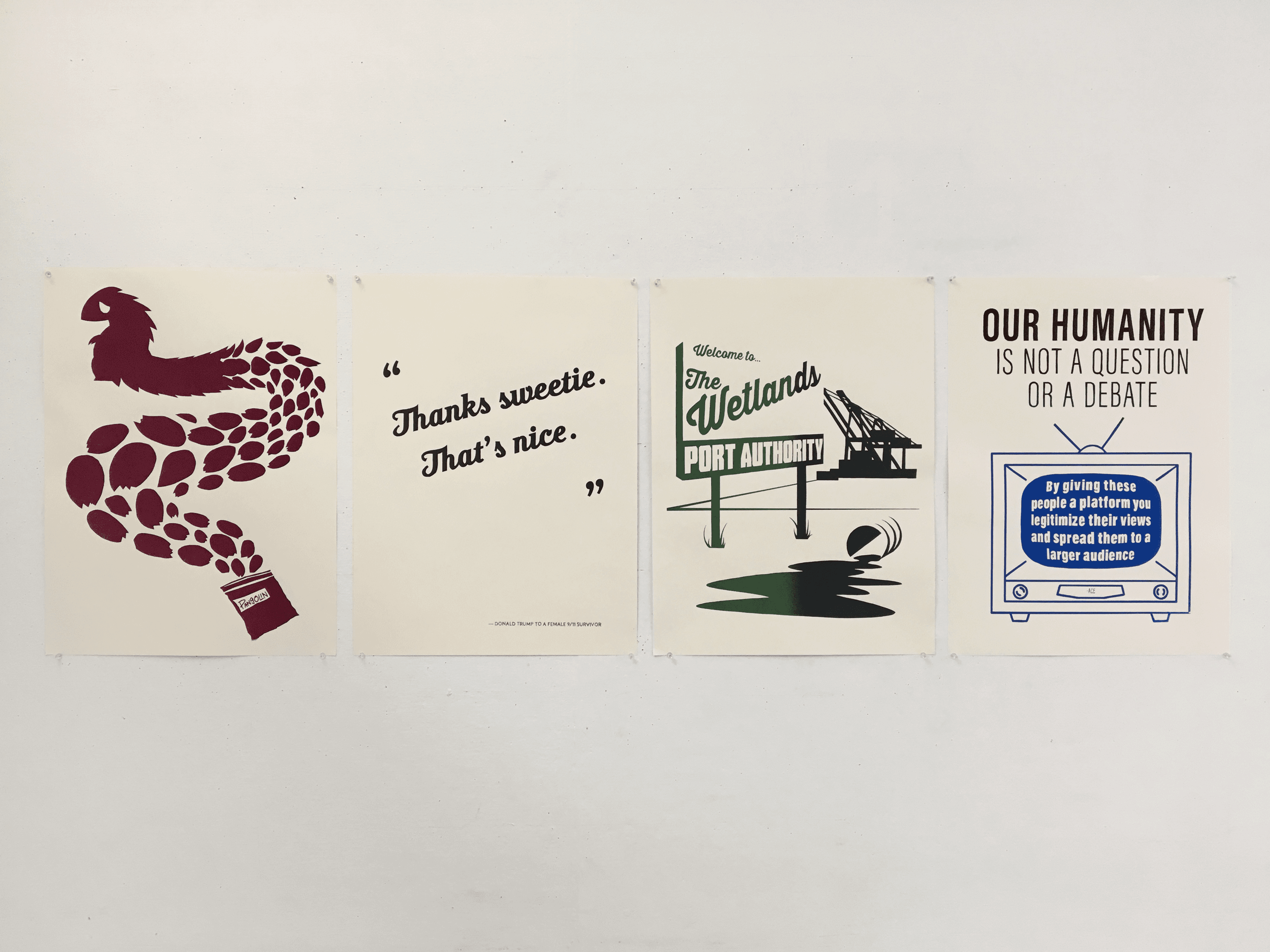 Poster Art for Advocacy was a semester long class in which I designed relevant social justice and environmental topics while exploring relationships between type, image, and message at a large scale. Assignments focusing on experimentation and personal voice. All while learning screen printing principles and techniques while producing my own work.