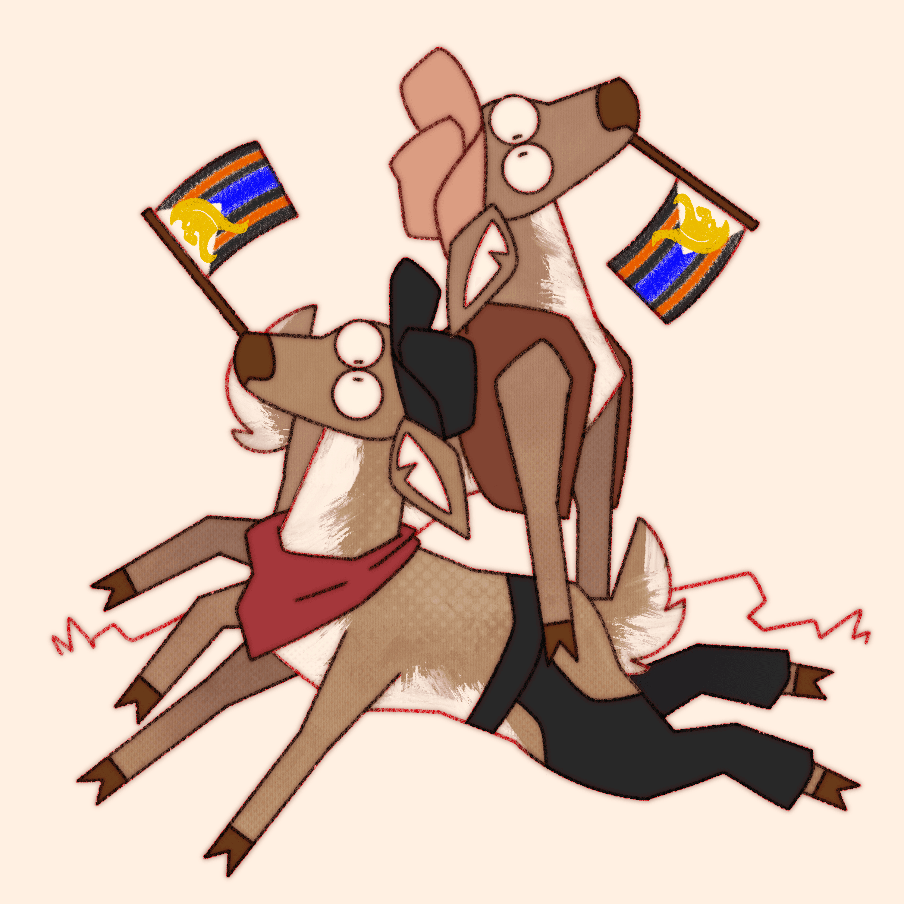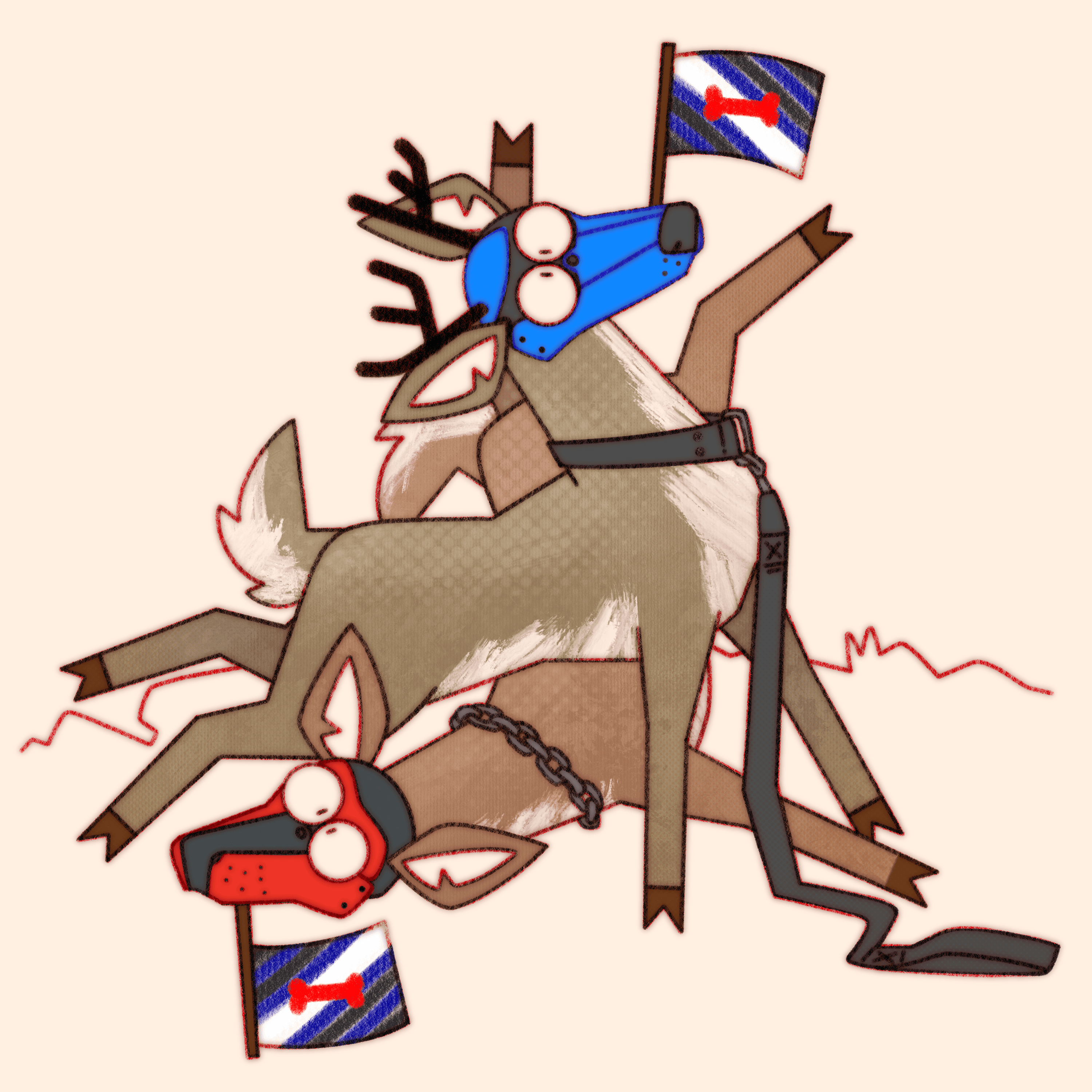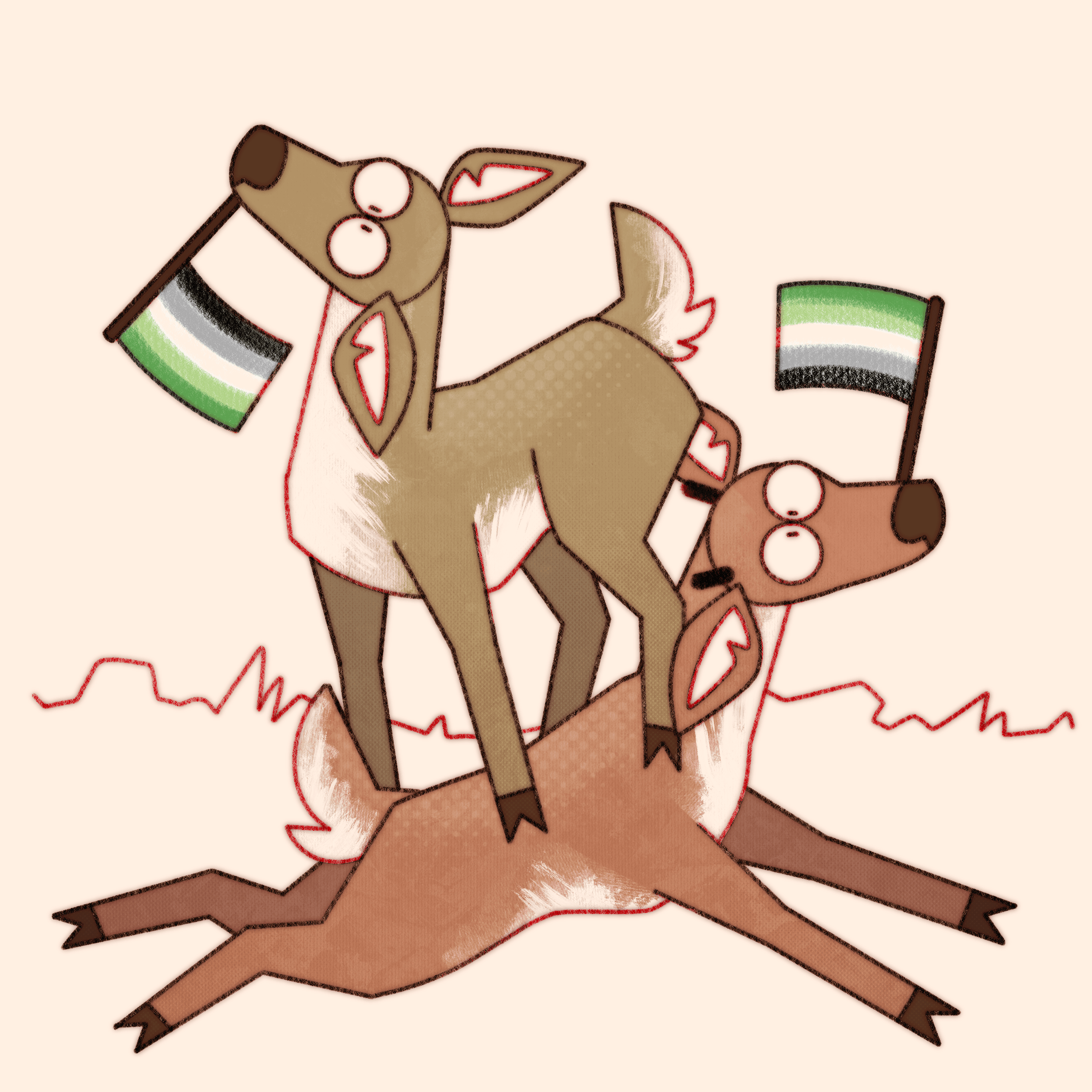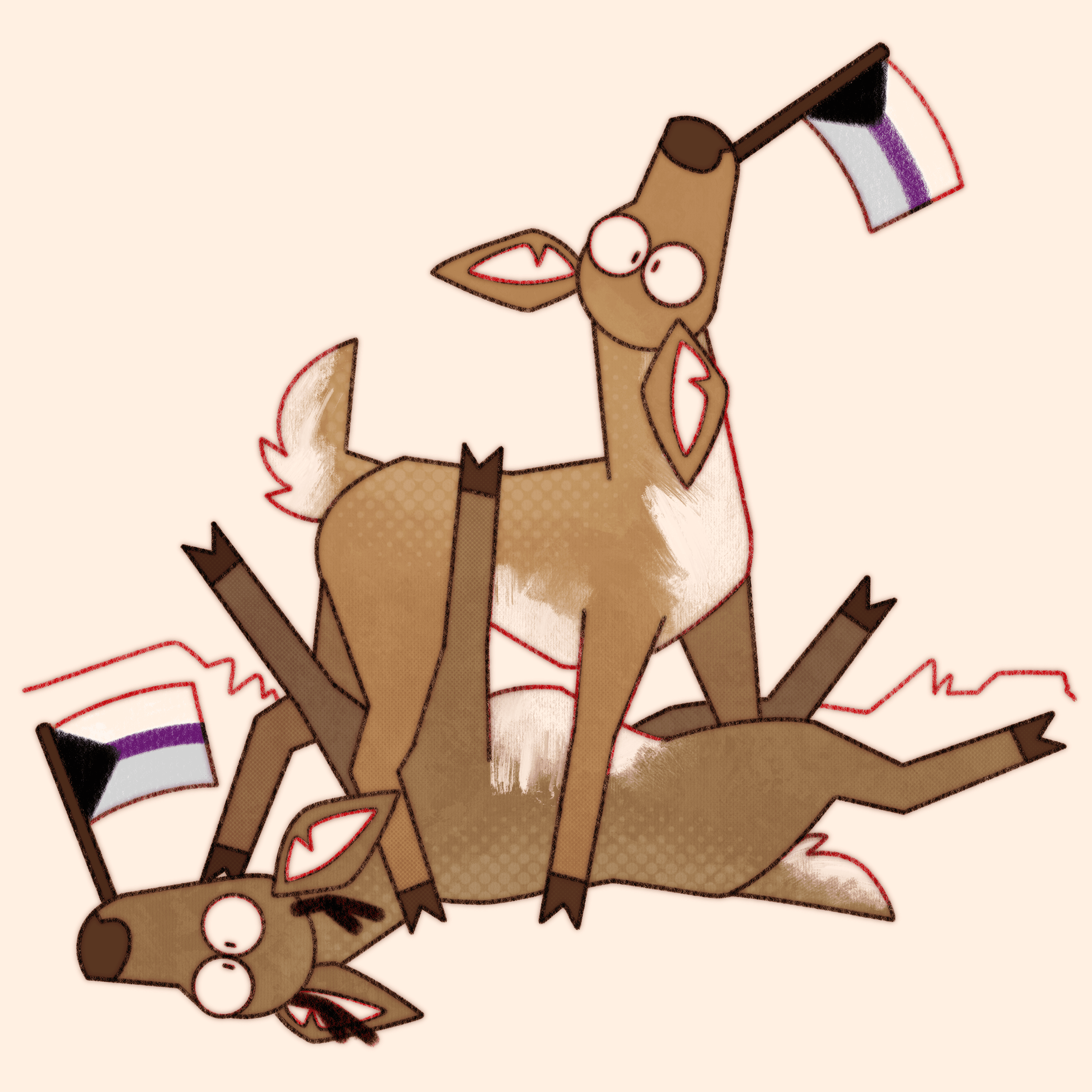 Truly what became the most difficult aspect of this ongoing project is not maintaining consistency in style and execution over the years, or studying pride flags and their corresponding niche queer communities, it’s coming up with new and interesting ways to pile deer haphazardly.